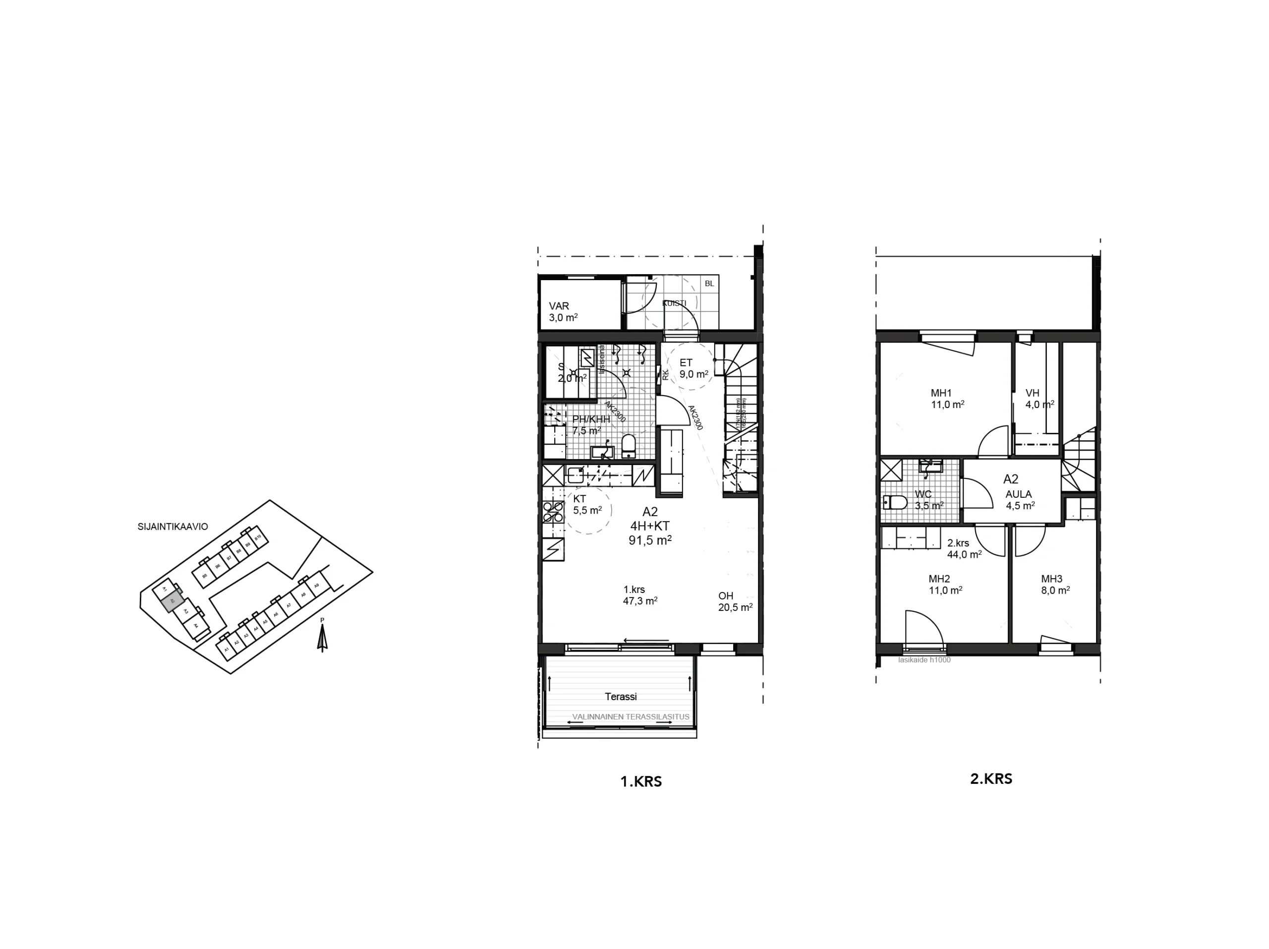 Rivitalo | Pinta-ala 91,5 m² | 4 h + kt + s