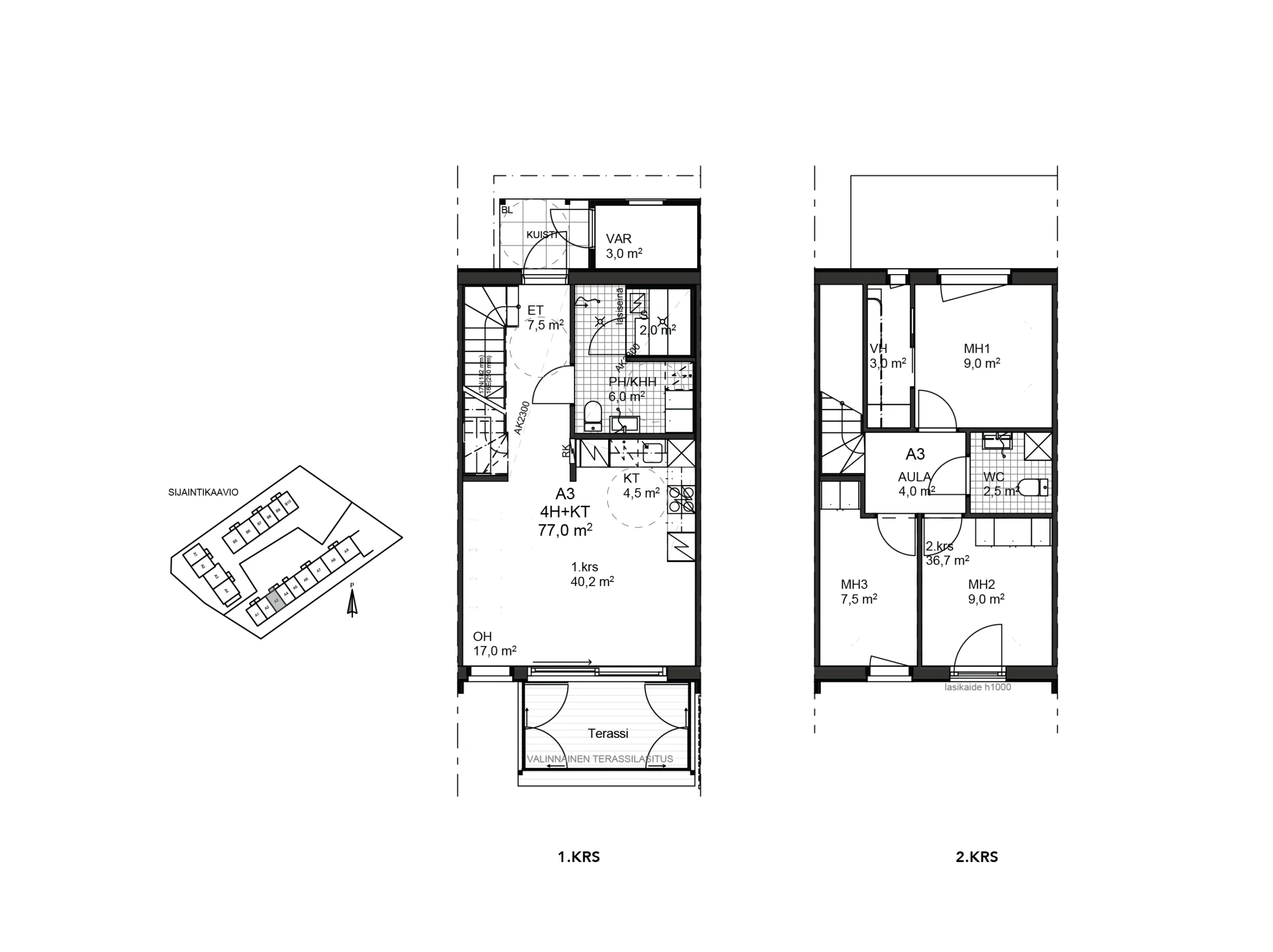 Rivitalo | Pinta-ala 77 m² | 4 h + kt + s