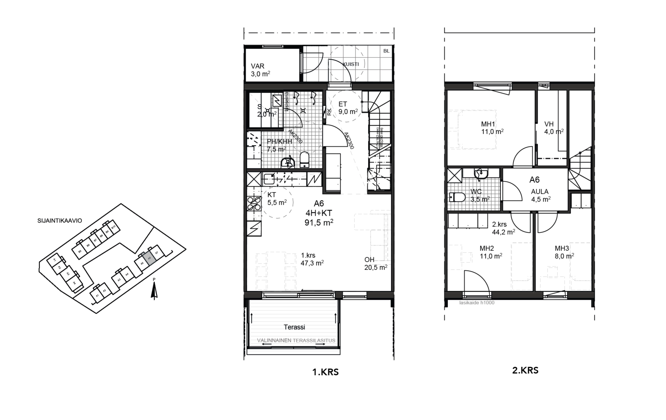 Rivitalo | Pinta-ala 92 m² | 4 h + kt + s